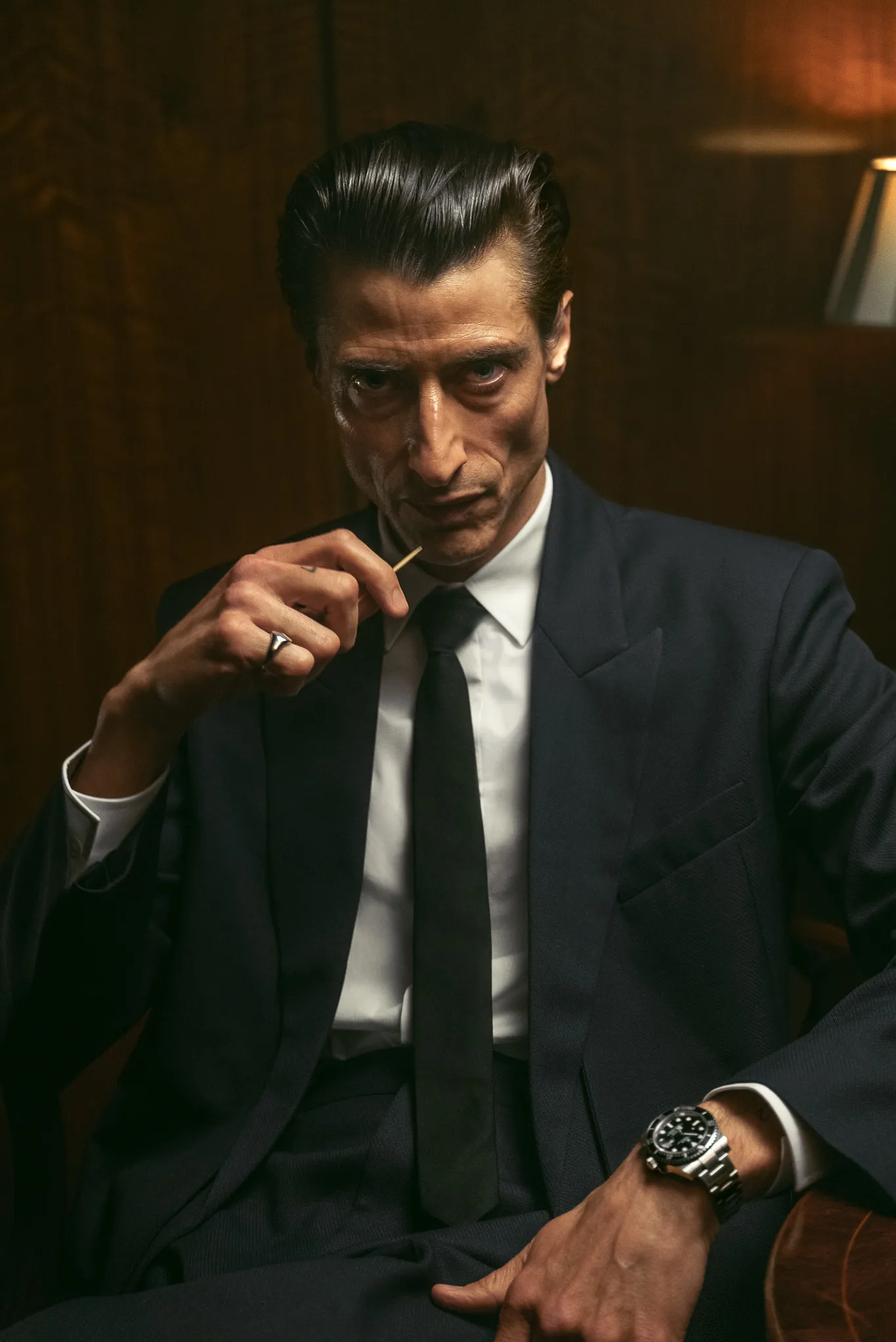 A Rich, textured fashion editorial that celebrates the iconic men's style of the 1990s. Drawing inspiration from seminal films like "Wall Street" and "American Psycho," this story blends the sophisticated and bold aesthetics of legendary designers such as Versace, Armani, Hugo Boss, and Prada. Set against the backdrop of quintessential 90s locations and styled with era-defining luxury, each scene is crafted to mimic the drama and elegance of cinema.